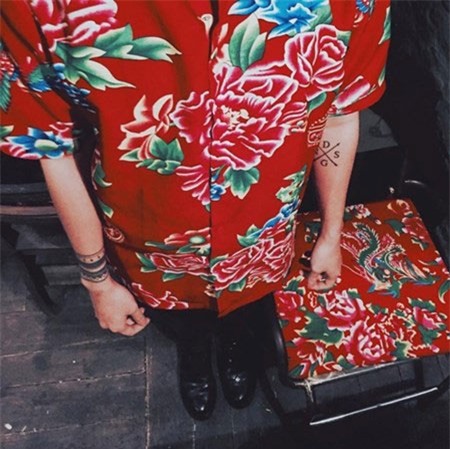 dâu Việt Trần Lệ Huyền áp dụng họa tiết xanh đỏ những năm 1980 vào áo
