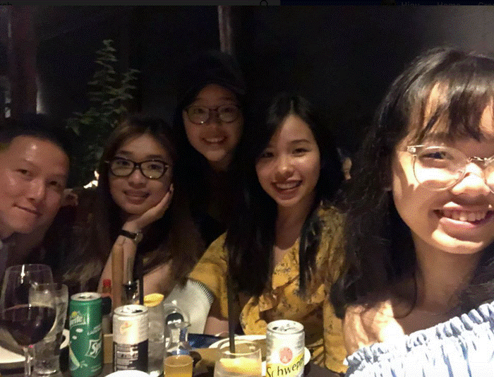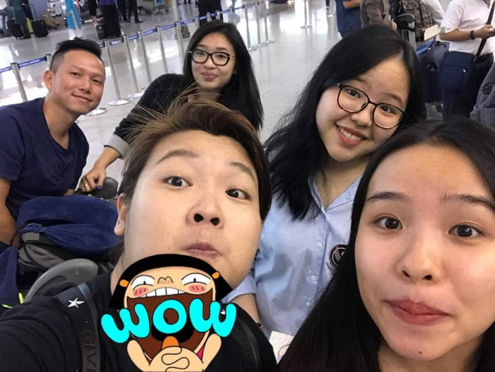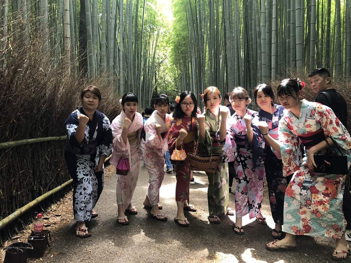 Viên Minh (thứ 2 từ trái sang) nhí nhảnh khi đi du lịch Nhật Bản.
