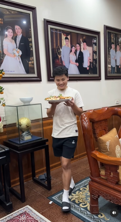 Trên trang cá nhân của mình, Quang Phong thỉnh thoảng khoe những đoạn clip đu trend trên TikTok cùng vợ. Đặc biệt nhất, anh trai Quang Hải rất thích nấu ăn, thường xuyên vào bếp trổ tài nấu nướng cho cả nhà. Bên cạnh đó, Hoài Linh - bà xã Quang Phong cũng hay khoe những khoảnh khắc được chồng cưng chiều như mua quà tặng, đưa đi shopping, phụ giúp chăm con khiến dân tình khen nức nở.