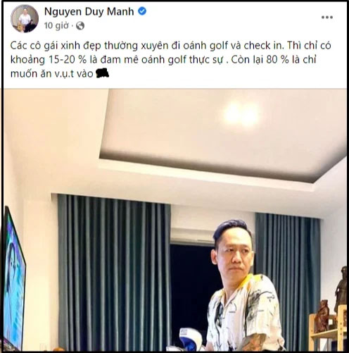 Màn cà khịa cực gắt của ca sĩ Duy Mạnh khẳng định "cô gái xinh đẹp thường xuyên đi đánh golf thì chỉ có khoảng 15-20% là đam mê..."