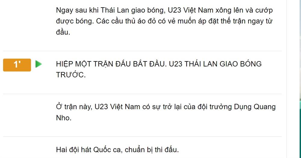 Sang hiệp 2, tuyển U23 Việt Nam chủ động chơi chắc khiến đối thủ gặp vô vàn khó khăn. U23 Thái Lan gần như không thể lên bóng và chỉ biết đặt niềm tin vào các tình huống cố định. Chúng ta thậm chí còn có cơ hội nâng tỷ số lên 2-0 khi bóng chạm xà đội bạn từ một tình huống phạt góc.