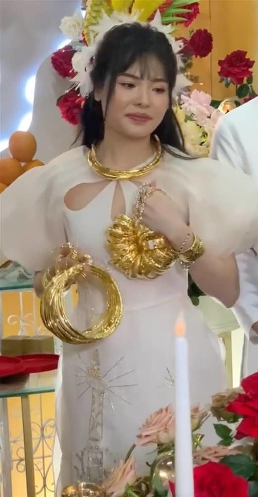 Vàng đeo kín người khiến chính cô dâu trẻ phải cảm thán: "Lấy chồng gánh nặng quá".