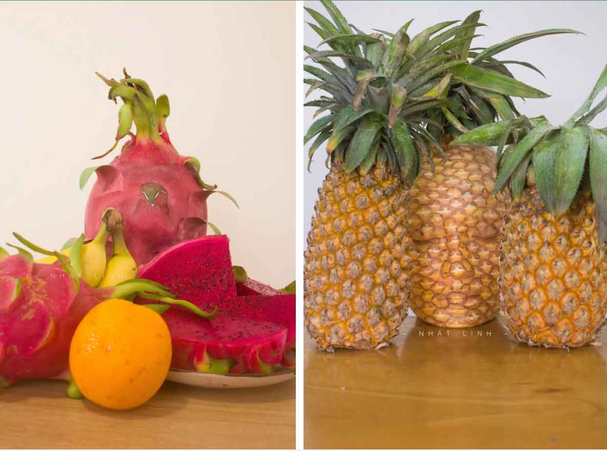 Cô hóa trang thành trái thanh long và trái dứa.