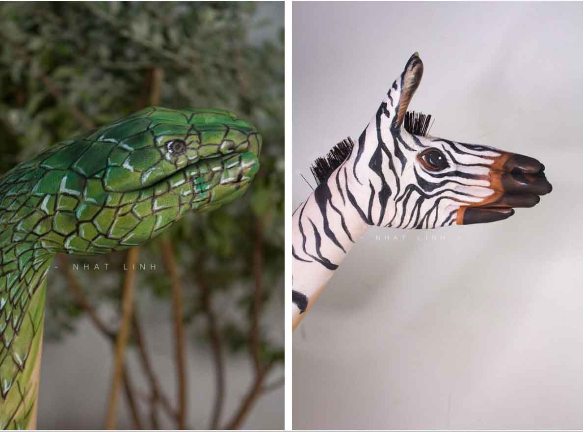 Đôi bàn tay trở thành những con vật giống thật đến ngỡ ngàng.