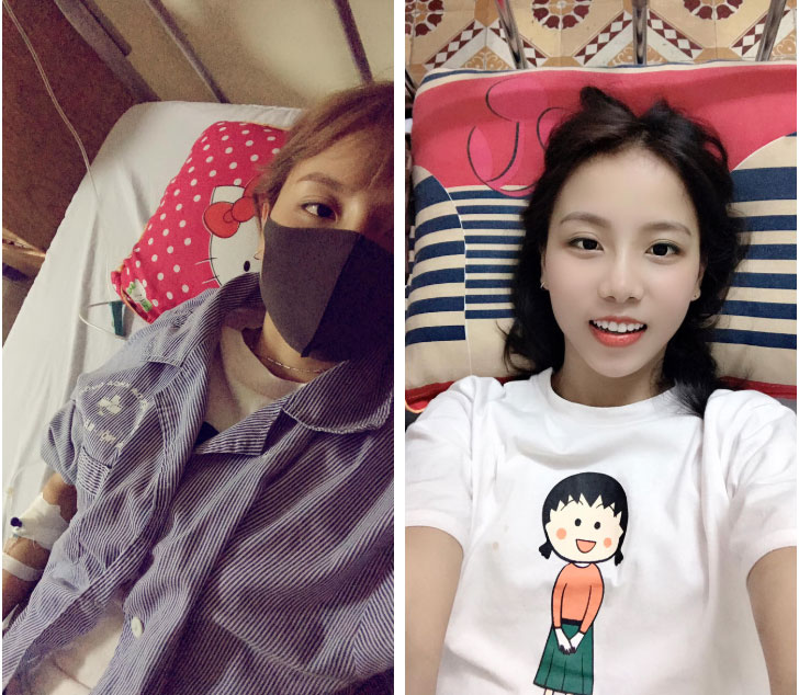 Lan Vlog khi mới bắt đầu nằm viện (trái) và hiện tại (phải).
