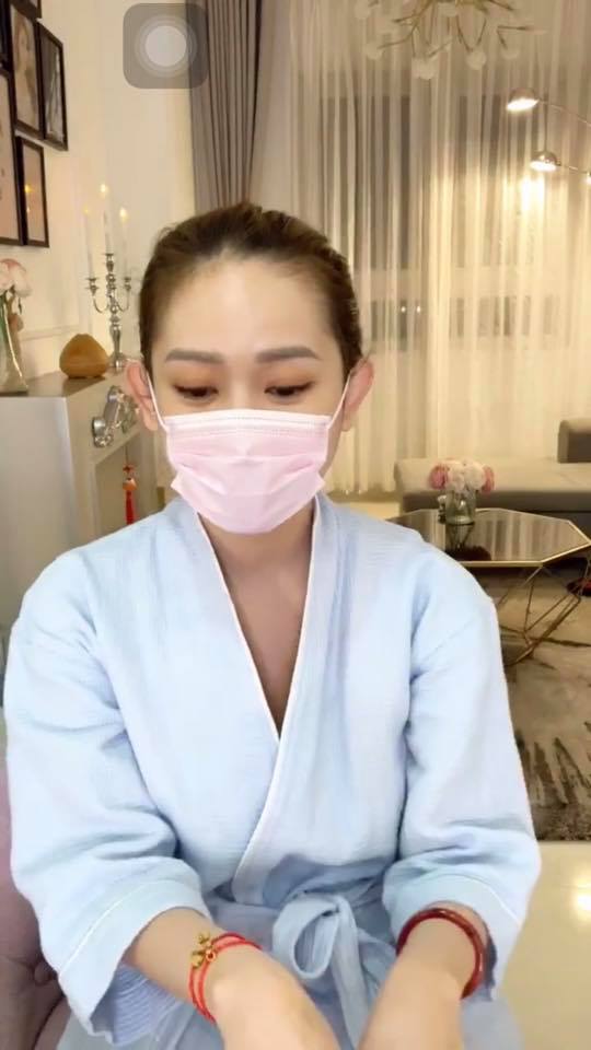 Ban đầu Thúy Vi bịt khẩu trang livestream nhé.