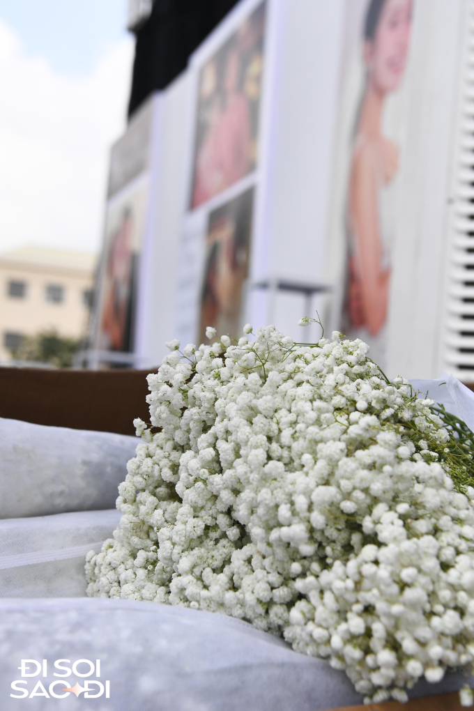 Văn Hậu và Hải My chọn nhiều loại hoa tươi trang trí cho đám cưới với màu chủ đạo là trắng và xanh dương