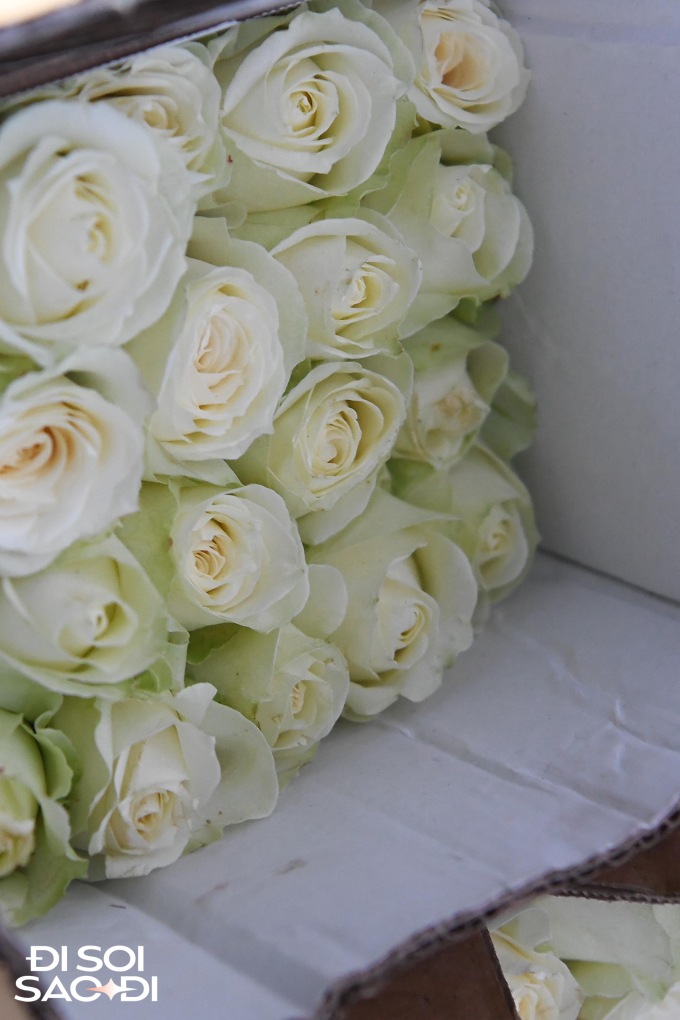 Những cành hoa được dưỡng rất kĩ trước khi cắm lên cổng và sân khấu, đảm bảo ngày mai hoa vẫn còn tươi xinh đón cô dâu về dinh