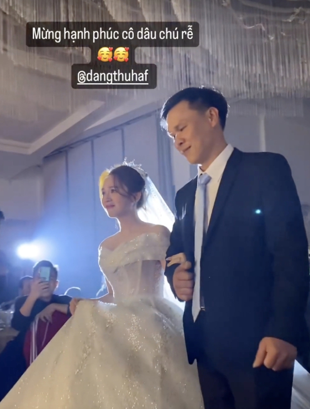 Trong nhiều khung hình được bạn bè tag, Hà Mã Tấu luôn cười tươi rạng rỡ, vui vẻ. Tuy nhiên tới giây phút được bố dắt tay trên lễ đường, cô nàng không kìm được xúc động, nghẹn ngào rơi nước mắt. Không những vậy, khoảnh khắc Hà Mã Tấu với đôi mắt rưng rưng hạnh phúc nhìn chú rể cũng được camera bắt trọn khiến hội “ăn cưới online” cũng bày tỏ sự xúc động.