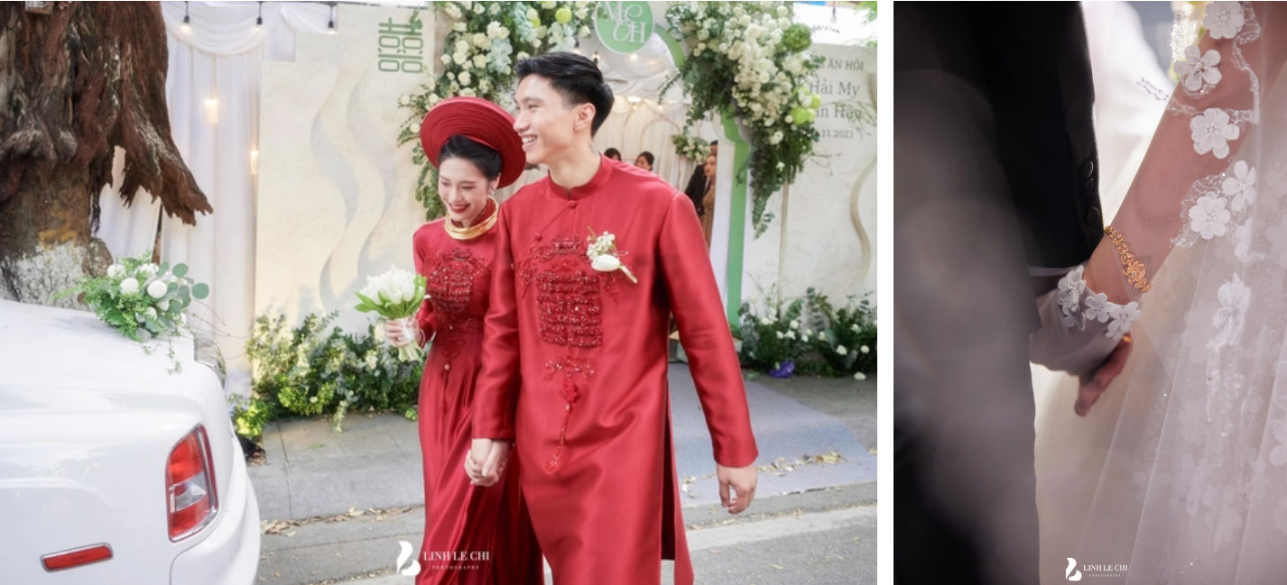 Ngày 11/11 vừa qua, lễ cưới hỏi của chàng hậu vệ và TOP 10 Hoa hậu Việt Nam 2020 khiến mạng xã hội bùng nổ. Chặng đường nhà trai xuất phát đi ăn hỏi đến lúc rước dâu về làm lễ ở quê nhà Thái Bình đều có người hâm mộ dõi theo.