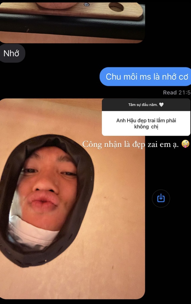 Mới đây, Doãn Hải My dành thời gian rảnh ngày nghỉ lễ để trả lời các câu hỏi của người hâm mộ. Đáng chú ý, khi được fan hỏi: “Anh Hậu đẹp trai lắm phải không chị?”, Doãn Hải My nhanh chóng đáp: “Công nhận là đẹp trai”. Tuy nhiên, đăng kèm cùng đó là một bức ảnh “dìm” chàng hậu vệ khiến cộng đồng mạng thích thú. Ngoài ra, cách nói chuyện của cặp đôi cũng khiến nhiều người ngưỡng mộ vì khá thoải mái và vui vẻ.