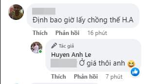 Dưới phần bình luận, bên cạnh vô số lời khen xinh đẹp, gợi cảm hay đôi chân dài miên man... thì một tài khoản mạng hỏi: "Định bao giờ lấy chồng thế Huyền Anh?".