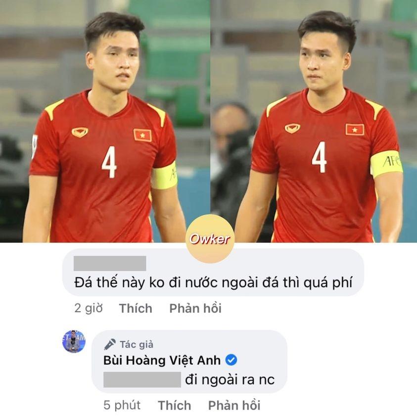 Trước quyết định của Bùi Hoàng Việt Anh, mới đây một tài khoản đã bày tỏ tiếc nuối cho nam cầu thủ: "Đá thế này không ra nước ngoài đá thì quá phí". Nhưng người này đã nhận về câu trả lời khá ''phũ'' từ Việt Anh: "Đi ngoài ra nước".