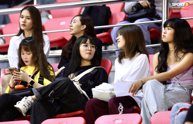 Hình ảnh Misthy, Hậu Hoàng và Khánh Vân trên SVĐ làm khán giả cổ vũ cho trận đấu