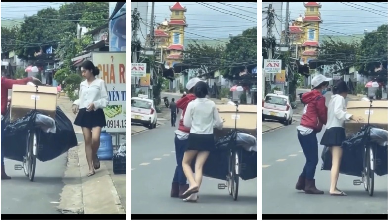 Theo người chứng kiến sự việc, vừa nghe tiếng xe đạp lách cách quen thuộc chở đủ những món đồng nát nặng trĩu về đến đầu ngõ, cô con gái chạy ào ra đỡ rồi nhanh chóng dắt xe về nhà giúp mẹ mình.