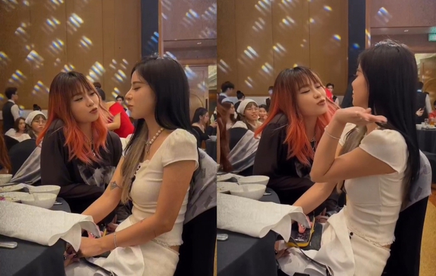 Đáng chú ý nhất là cặp đôi MisThy và Diệp Anh (Bank). Dù cặp đôi này chưa chính thức công khai nhưng đã có thời gian bên nhau rất lâu. Trong đoạn clip được "Đàm Tổng" chia sẻ, MisThy định hôn người yêu cùng biểu cảm cực kỳ đáng yêu ngay tại lễ cưới của DJ Chip.
