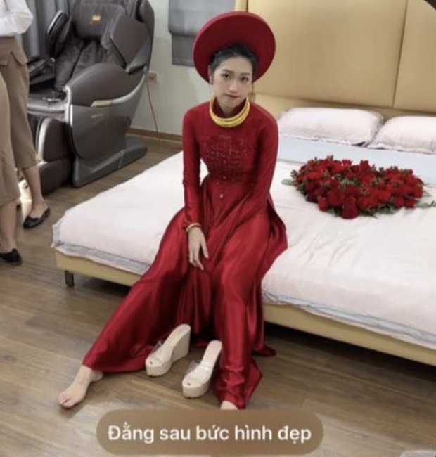 Đôi dép xuồng được Hải My sử dụng trong đám hỏi và đám cưới khá cao