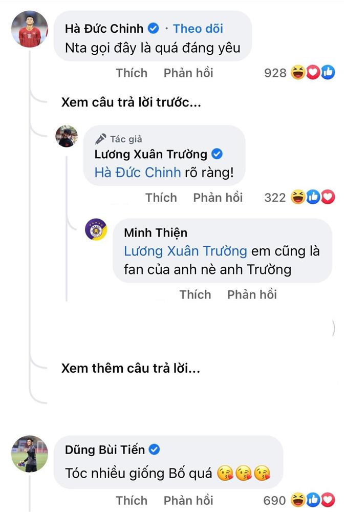 Trong khi đó, Hà Đức Chinh dành lời khen cho khoảnh khắc ấm áp của Xuân Trường bên con gái thì thủ môn Bùi Tiến Dũng cũng gửi lời “có cánh” đến bé Daisy.