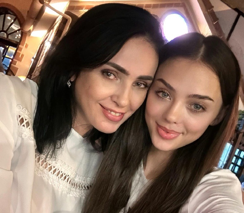 Khi trang điểm cùng tông với con gái, bà ngoại người Ukraine thậm chí chẳng hề bị gái cưng lấn át. Khác với vẻ ngoài mơn mởn của Dianka, mẹ ruột cô gây ấn tượng với nét đẹp quyến rũ, sang trọng.