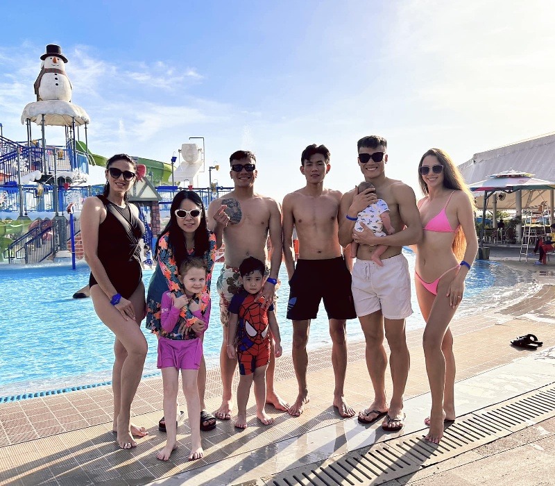 Từ khi sang Việt Nam chăm sóc con gái, mẹ vợ Bùi Tiến Dũng nhận được nhiều sự quan tâm. Nam thủ môn dành nhiều thời gian đưa cả gia đình đi chơi, đi du lịch cùng nhau.