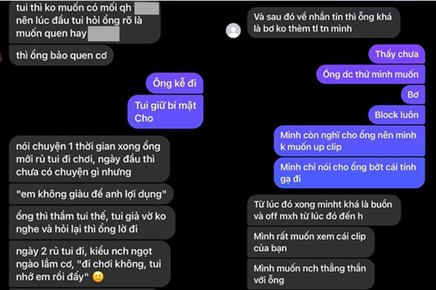 Đáng nói, ban đầu A cũng đồng thuận với những lời gợi ý của H.H nhưng khi thấy một bạn nam khác cũng đăng tải clip nhận mình là "nạn nhân" của hot Tiktoker 1,3 triệu follow này thì đã quyết tâm lên tiếng "bóc phốt" để mọi người biết rõ "bộ mặt thật" của H.H.
