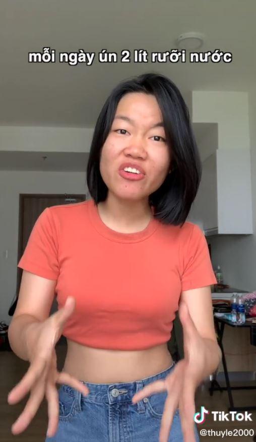 "Đây là kết quả của việc mỗi ngày đánh cầu lông 2 tiếng. Cộng thêm việc tối 2,4,6 từ 8h30 đến 9h30 tập gym. Cộng thêm mỗi ngày uống 2 lít rưỡi nước", cô viết.