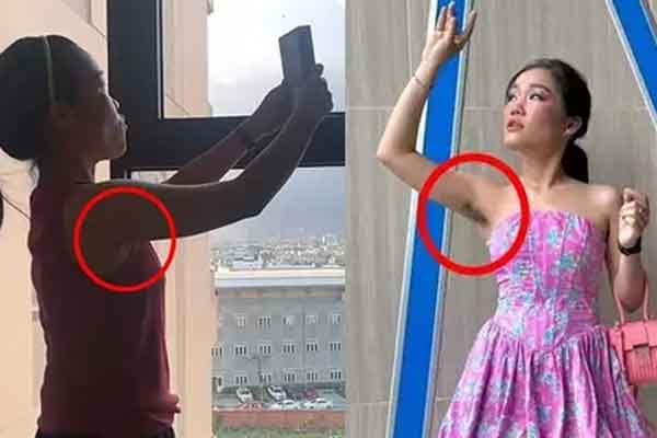 Điều khiến dân tình sốc lên sốc xuống là cách tạo dáng của Lê Thụy, cô giơ tay cao tạo dáng để lộ lông nách vùng dưới cánh tay rậm rạp chẳng khác gì rừng Amazon.