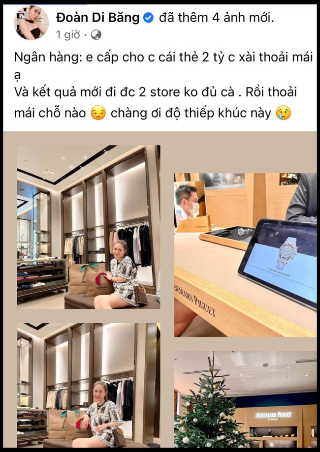 Có thể thấy, độ chịu chi của Đoàn Di Băng, khi chỉ mới đi đến 2 cửa hàng mà cô đã tiêu hết 2 tỷ khiến nhiều người nghe "choáng váng".