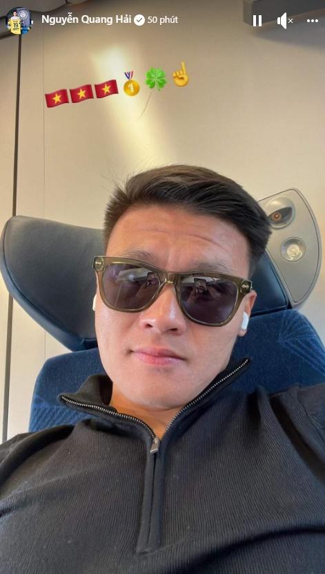 Sau khi cùng Pau FC thi đấu vòng 9 Ligue 2 vào tối 17/9, Quang Hải đã gấp rút chuẩn bị đồ đạc về nước. Ít phút trước, chân sút họ Nguyễn hào hứng chia sẻ hình ảnh check in trên máy bay.