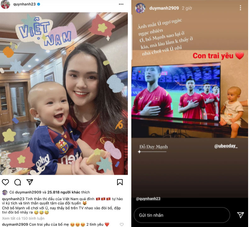Trước đó, trong suốt quá trình chồng thi đấu ở nước bạn, mọi động thái trên trang cá nhân của Quỳnh Anh cũng được cư dân mạng follow nhiệt tình. Những lời nhắn nhủ, cổ vũ của cô vợ thân yêu chắc chắn đã tiếp thêm nhiều động lực cho chàng cầu thủ trẻ.