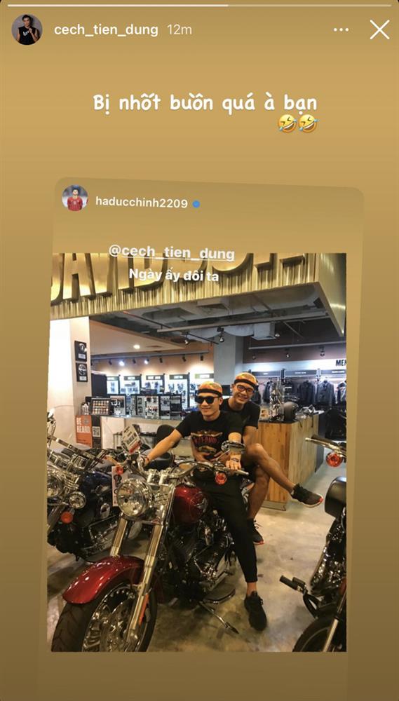 Theo đó, anh chàng đã chia sẻ lại một story của người bạn thân Hà Đức Chinh. Đức Chinh cũng góp mặt trong danh sách triệu tập tại vòng loại thứ 2 vừa rồi. Chinh "đen" đã cặm cụi ngồi lục lại một tấm ảnh cũ vừa ngầu vừa hài chụp cùng Bùi Tiến Dũng và đăng lên. Và kết quả là Bùi Tiến Dũng cũng phải thốt lên: "Bị nhốt buồn quá à bạn?".