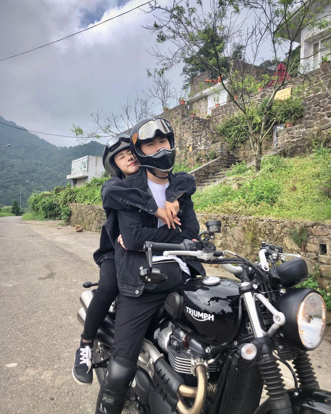 Riêng Tùng Sơn lại có niềm đam mê với mô tô, cặp đôi có những chuyến đi phượt bằng chiếc Triumph khiến dân tình ghen tị