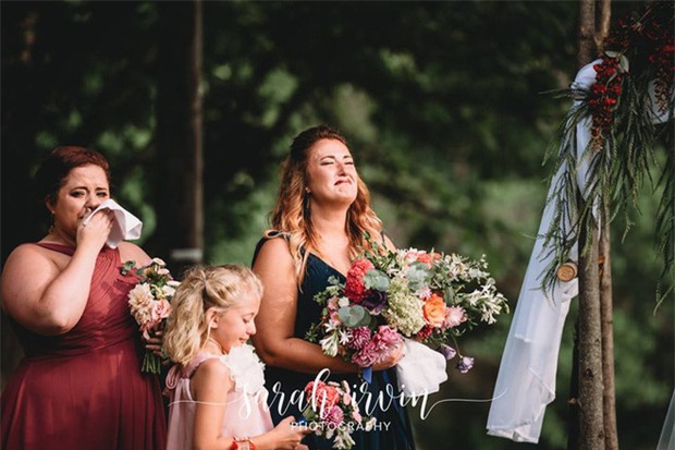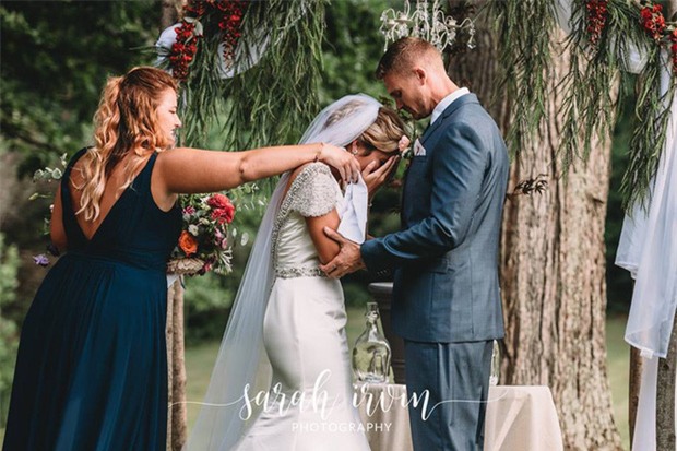 "Khi cô dâu, chú rể bước lên làm lễ, mục sư yêu cầu mọi người cúi đầu cầu nguyện thì một giọng nói vang lên trên loa. Đó chính là tiếng ông nội của Britany. Ông cầu nguyện cho đôi trẻ và tuyên bố họ chính thức trở thành vợ chồng", nhiếp ảnh gia Sarah Irvin có mặt trong buổi lễ ngày 26/7 kể lại.