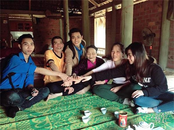 Nhóm thanh niên tình nguyện về chia vui với vợ chồng ông Khánh sau khi Bùi Tiến Dũng và U23 Việt Nam lập nên chiến tích lịch sử