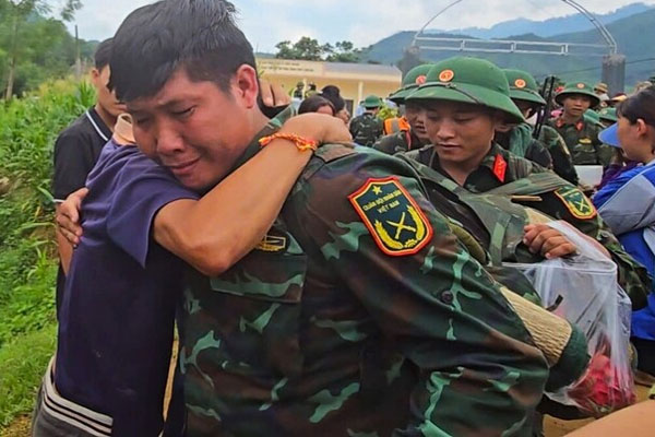 Hòa trong dòng người tiễn bộ đội rời làng, anh Hoàng Văn Thới (32 tuổi) bật khóc nghẹn ngào. Thoát chết sau trận lũ quét kinh hoàng, anh Thới lại chịu đựng nỗi đau tột cùng khi mất mẹ già, vợ và 3 con nhỏ.