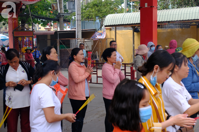 Tương tự là ở chánh điện, người đeo khẩu trang đứng xen lẫn với những gương mặt "gan dạ" liên tục xin phong bao lì xì may mắn đỏ theo thông lệ hàng năm của chùa Bà Thiên Hậu.
