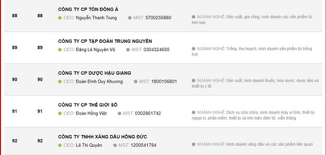 Trong danh sách những doanh nghiệp tư nhân lớn nhất Việt Nam (VNR500) của Vietnam Report thì Trung Nguyên đứng thứ hạng khá cao là 89 vào năm 2016. Trung Nguyên cũng đứng thứ 83 trong Top 500 doanh nghiệp lợi nhuận lớn nhất Việt Nam PROFIT500 vào năm 2017, xếp trên Xây Dựng Hòa Bình, TPBank hay ngân hàng VIB.