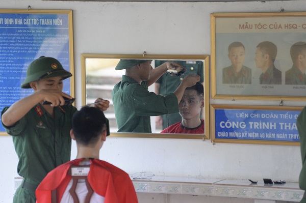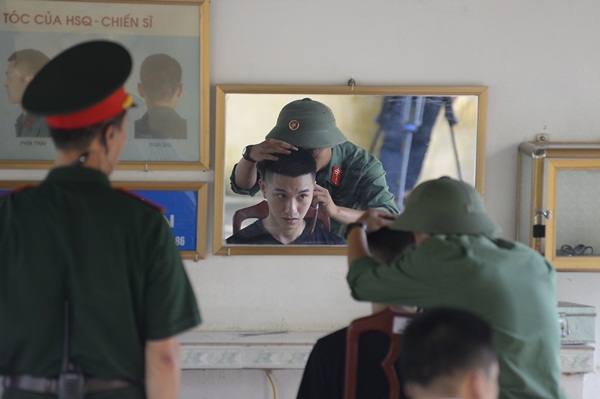 Đại Nhân xuống tóc tuân thủ theo quy định nhập ngũ.