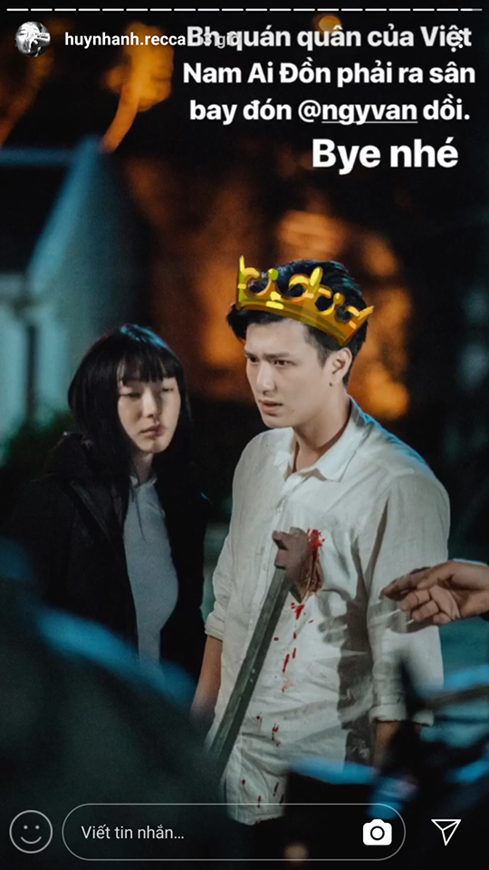 Nam diễn viên Huỳnh Anh vừa đăng tải lên story của Instagram loạt hình ảnh mang tính đáp trả những bình luận tiêu cực từ cộng đồng mạng dành cho mình. Đáng chú ý, sau khi hài hước phản hồi cư dân mạng, Huỳnh Anh bất ngờ viết: "Bây giờ quán quân của Việt Nam Ai Đồn phải ra sân bay đón Ngyvan dồi. Bye nhé."