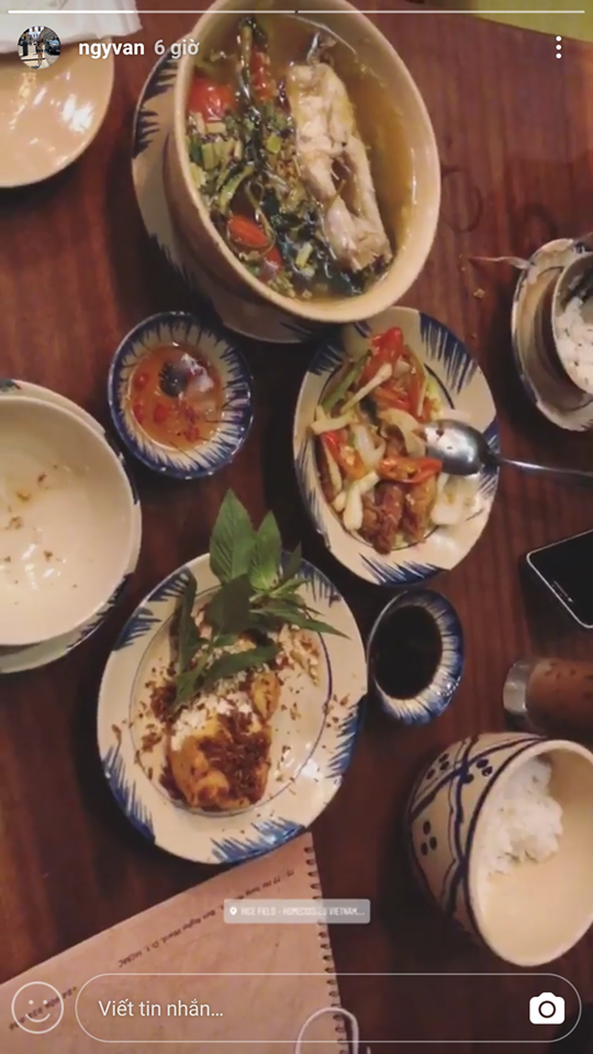 Trên trang cá nhân của cô gái có tên Ngyvan, hình ảnh bạn gái tin đồn của Huỳnh Anh tại Việt Nam cũng đã được cập nhật. Cô chia sẻ bức hình chụp từ phía sau đang ôm một người con trai giấu mặt tại sân bay. Cùng với đó là một bữa cơm gia đình đúng kiểu Việt Nam.