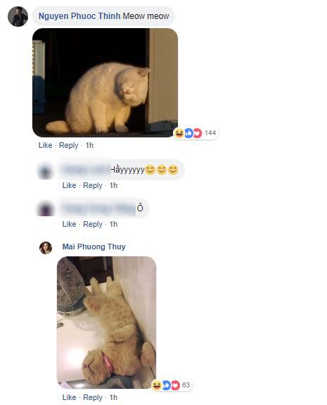 Mới đây, Mai Phương Thúy vừa chia sẻ lên facebook hình ảnh chú mèo mô tả cho tâm trạng của cô thì Noo đã nhanh chóng xuất hiện và comment ở bài đăng của bạn. Không để cho Noo chờ lâu, Mai Phương Thúy cũng phản hồi bằng hình ảnh chú mèo đáng yêu.