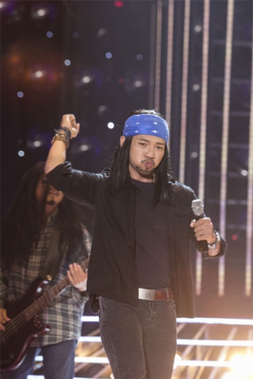 Mai Quốc Việt mở màn bằng tiết mục hóa thân thành Trần Lập, rocker của nhóm Bức Tường cùng ca khúc "Tâm hồn của đá".