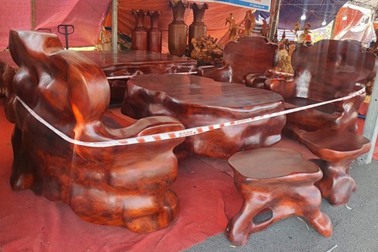 Bộ bàn ghế làm từ gỗ hương đỏ nguyên khối được phát giá 1,6 tỷ đồng