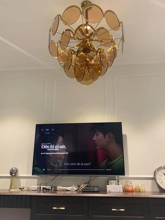 Bên trong một căn phòng khác trong biệt thự được trang trí bằng chiếc đèn chùm bắt mắt.