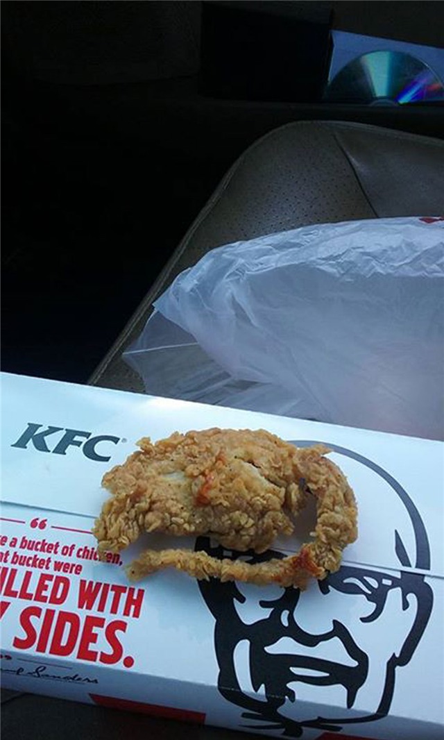 Theo Cosmopolitan, sau khi mua phần ăn gồm 3 miếng gà rán từ một cửa hàng KFC ở Wilmington, bang California, Mỹ, một người đàn ông tên là Devorise Dixon đã phát hiện có điều khác thường ở một trong những miếng gà của mình.