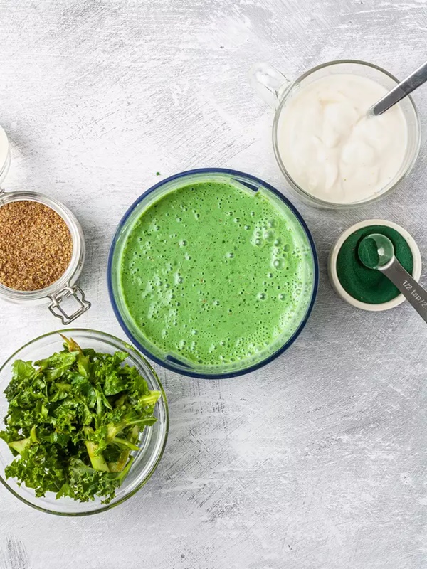 Lời nhắn: Bạn có thể thay đổi hạt lanh bằng hạt chia, hạt lanh cứng hơn nên sẽ cần nhiều thời gian xay nhuyễn. Ngoài ra, bạn có thể dùng thêm bơ lạt, bơ hạnh nhân hoặc bơ đậu phộng để biến tấu phần sinh tố này.