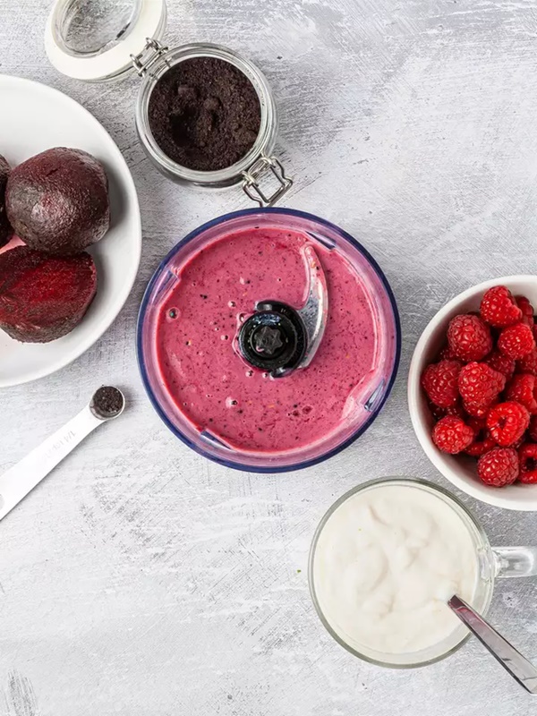 So với các nguyên liệu quen thuộc, bạn có thể mở rộng "vốn liếng" nguyên liệu để sáng tạo các công thức sinh tố tốt cho sức khỏe. Sinh tố cải xoăn mâm xôi có chứa nhiều thực phẩm có lợi cho việc giảm cân tự nhiên.
