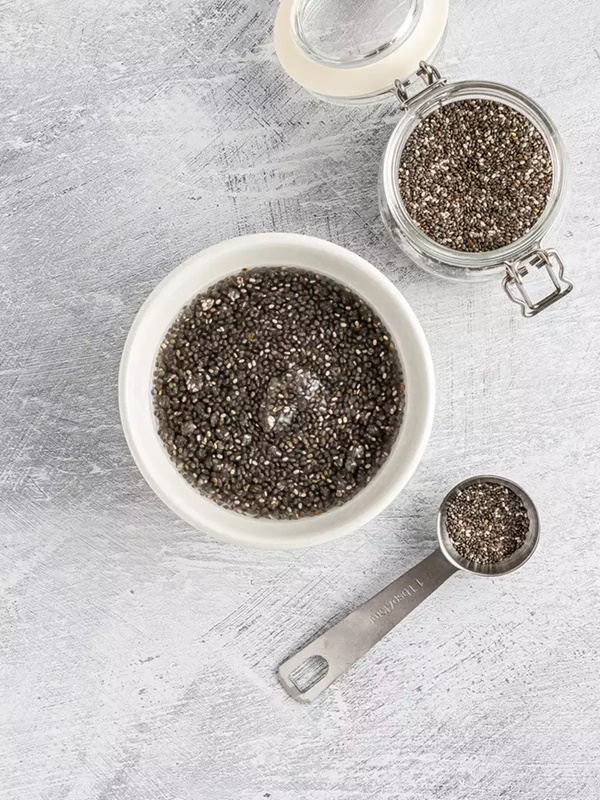 Bước 1: Trong 1 bát nhỏ, cho hạt chia vào nước khuấy đều. Để hạt ngâm trong khoảng 5 phút hoặc đến khi hạt chia ngậm đủ nước và trở thành hỗn hợp đặc và sệt.