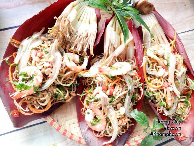 - Cuối cùng thêm rau thơm thái nhỏ cùng ít lạc rang. Vậy là bạn đã hoàn thành món nộm hoa chuối thanh mát cho ngày hè rồi. Cách làm nộm hoa chuối vô cùng đơn giản chị em hãy thử nhé!