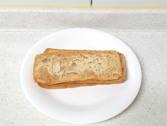 Bước 1: Chuẩn bị vỏ đậu phụ chiên loại dải dài hình chữ nhật.